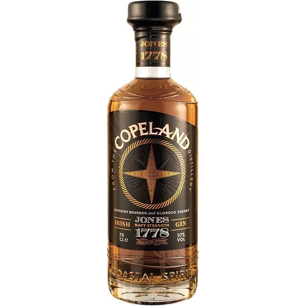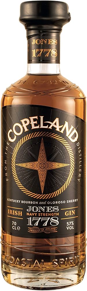 Copeland – Jones 1778 Navy Strength Gin 0.7 л е изискан ирландски Navy Strength джин от Copeland Distilleryв Донъгиди, Северна Ирландия — вдъхновен от морската история и победата на капитан John Paul Jones през 1778 г. Тази специална версия е силна (57 % ABV), лежала в дъбови бъчви, които придават уникална комплексност и богат аромат.
