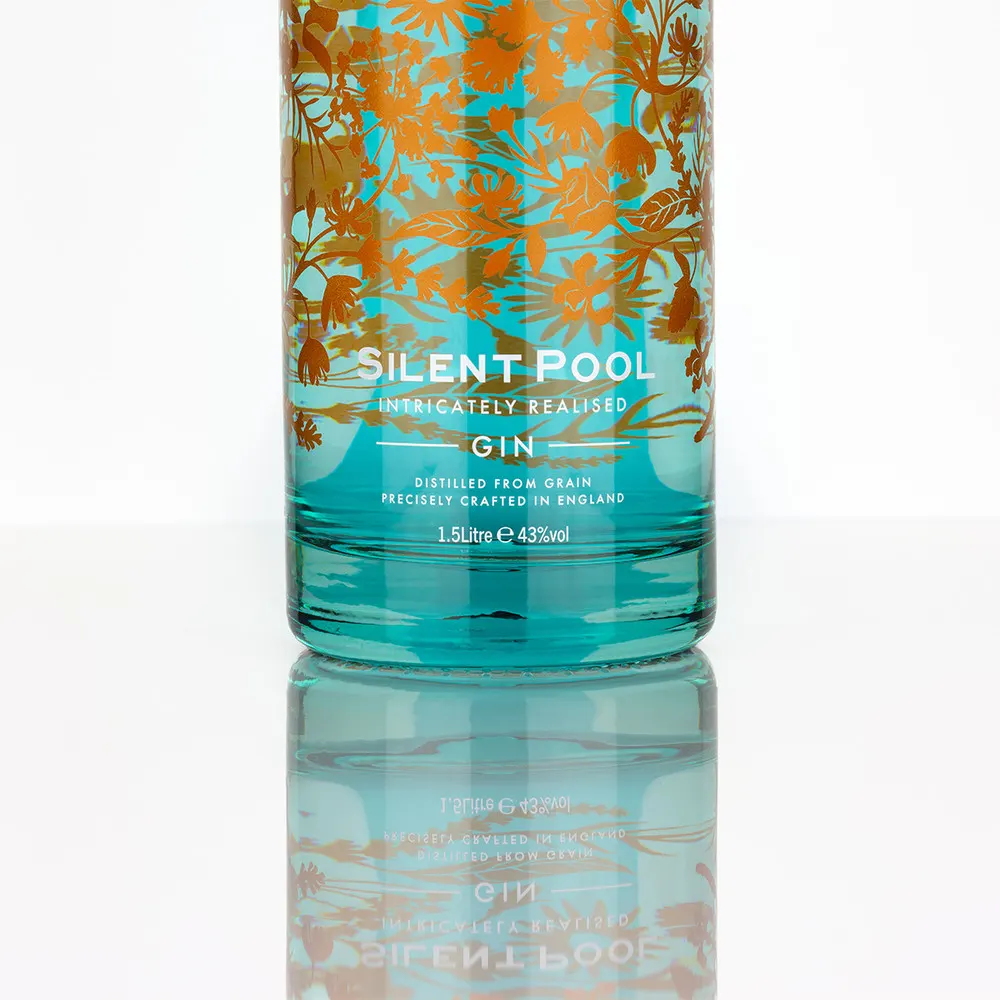 Silent Pool Distillers Silent Pool Gin 1.5 л е изискан английски крафт джин от графство Съри, вдъхновен от мистичния извор Silent Pool в подножието на хълмовете North Downs. Джинът е създаден с фокус върху сложност, баланс и елегантност, използвайки голямо разнообразие от ботаникали, които придават отличителен и запомнящ се профил.