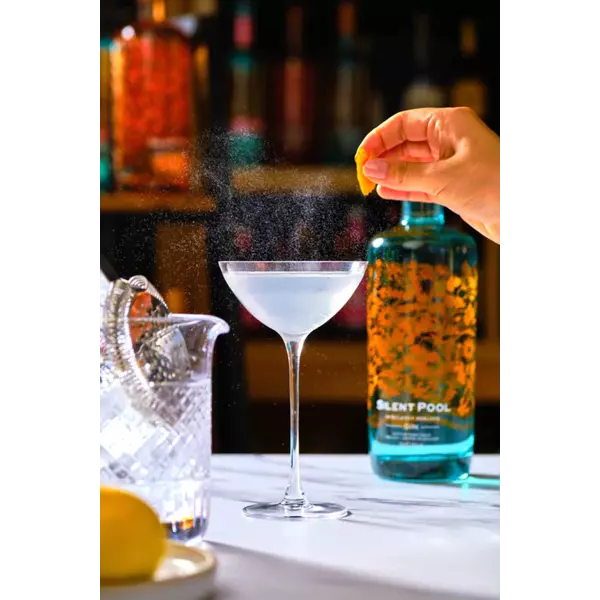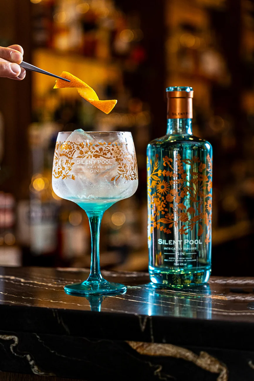 Уникални характеристики: Silent Pool Gin се отличава със своето производство, което използва 24 висококачествени ботанически съставки, внимателно подбрани и дестилирани, за да създадат перфектния баланс на вкусове. Джинът е дестилиран с използване на вода от самото езеро Silent Pool, което му придава неговата кристална чистота и свежест.